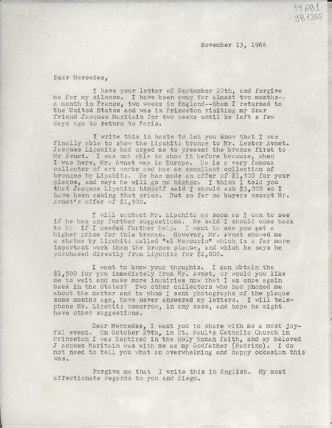 Maritain, Jacques - Dana, Doris - Manuscritos estadounidenses - Correspondencia