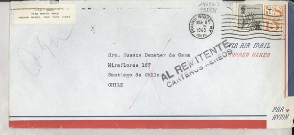 [Tarjeta] 1964, may. 9, [New York] [a] Radomiro Tomic, Santiago, Chile [manuscrito] Doris Dana.