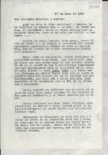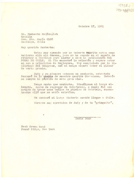 Correspondencia - Manuscritos estadounidenses - Dana, Doris - Ravinet de la Fuente, Jaime