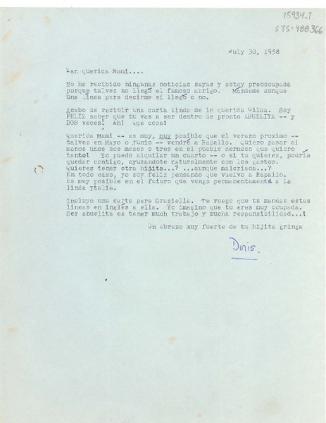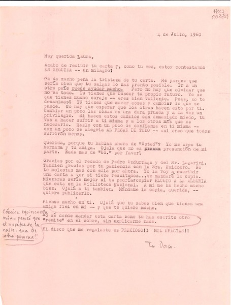 [Carta] jul. 6, [Estados Unidos] [a] Mireya Lafuente [manuscrito] [Doris Dana]