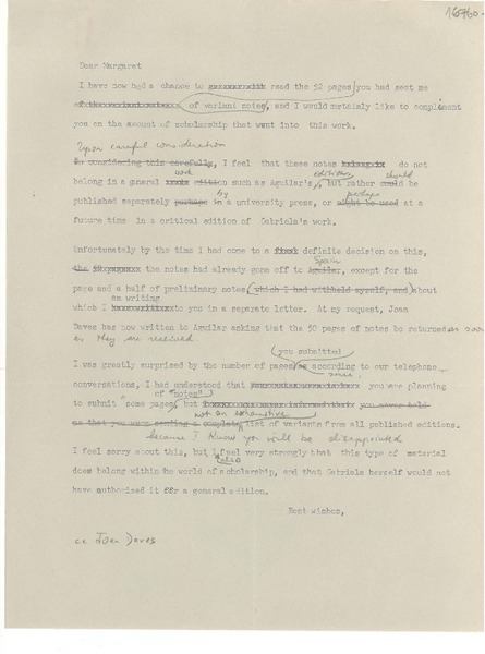 Memo 1967 Jan. 28, [EE.UU.] [a] Joan Daves, [EE.UU.] [manuscrito] Doris Dana.