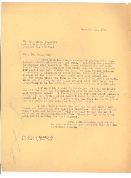 [Carta] 1957, dic. 14, New York [a] Martin L. Goldfarb, New York [manuscrito] Doris Dana.
