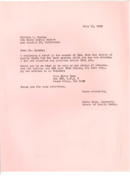 Dana, Doris - Correspondencia - Alone - Manuscritos estadounidenses