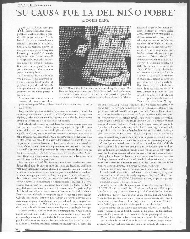 Su causa fue la del niño pobre [artículo] Doris Dana.