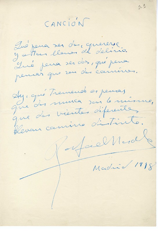 En una tarde de desengaño y pena [manuscrito] Rafael Morales.