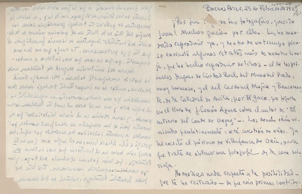 [Carta] 1953 febrero 25, Buenos Aires, Argentina [a] Juan Mujica, Santiago, Chile [manuscrito] Manuel Mujica Lainez.