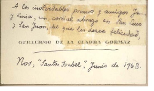 Cuadra Gormaz, Guillermo - Correspondencia - Autores chilenos - Manuscritos chilenos - Mujica, Juan