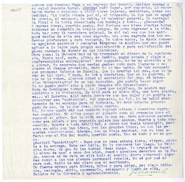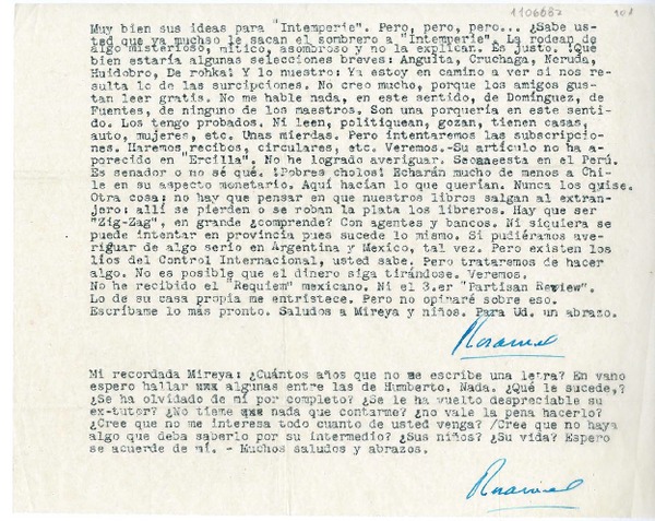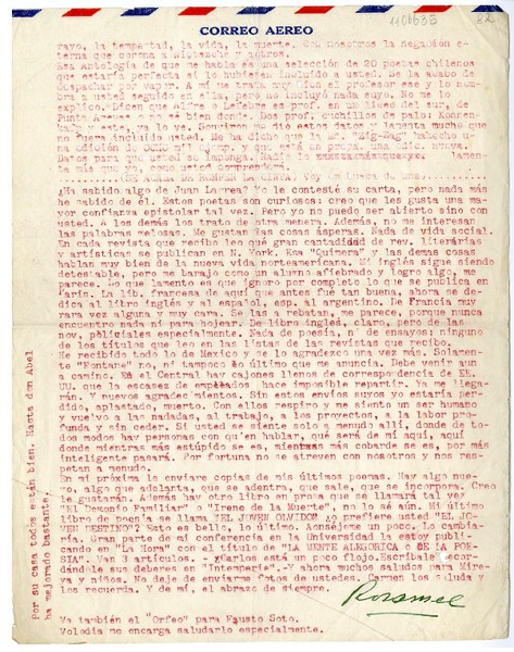 Manuscritos chilenos - Autores chilenos - Correspondencia - Díaz-Casanueva, Humberto - Valle, Rosamel del