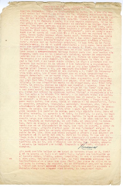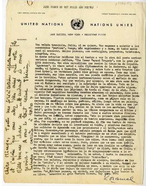[Carta] 1946 octubre 27, Nueva York [a] Homero Arce [manuscrito] Rosamel del Valle.
