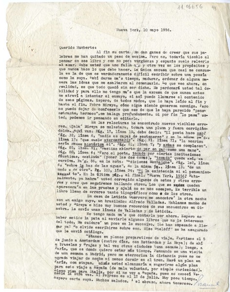 [Carta] 1956 mayo 10, Nueva York [a] Humberto Díaz-Casanueva [manuscrito] Rosamel del Valle.