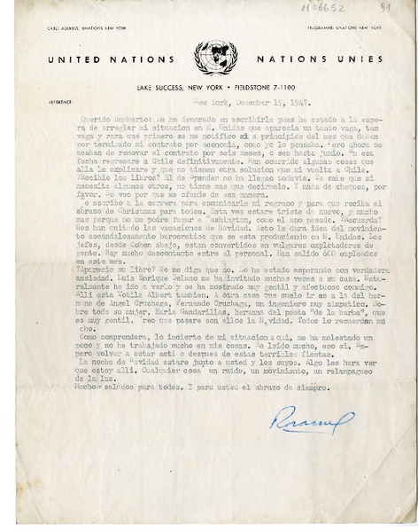 [Carta] 1947 diciembre 19, Nueva York [a] Humberto Díaz-Casanueva [manuscrito] Rosamel del Valle.
