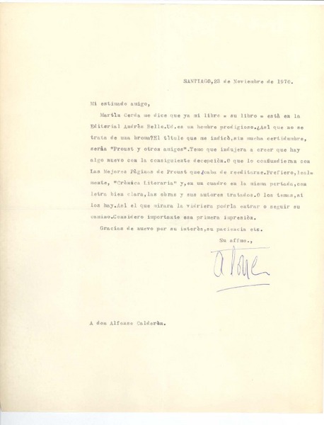 [Carta] 1970 nov. 23, Santiago, Chile [a] Alfonso Calderón [manuscrito] Hernán Díaz Arrieta.
