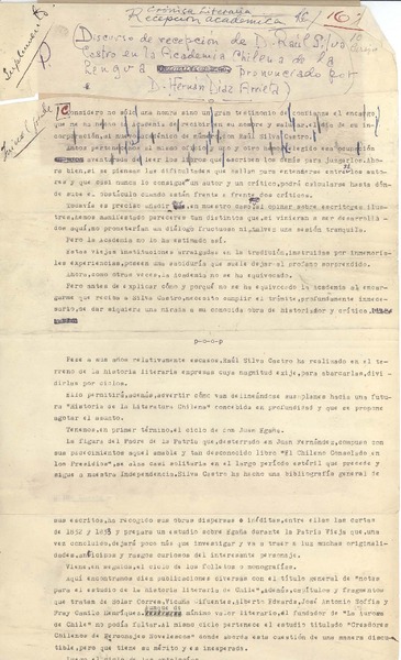 Silva Castro, Raúl - Discursos - Manuscritos chilenos