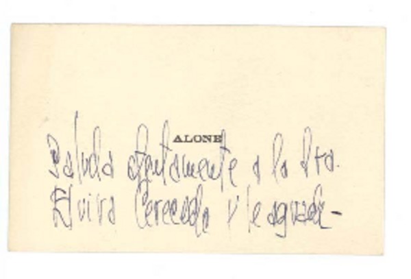 [Tarjeta] 1966 feb. 11, Santiago, Chile [a] Elvira Cereceda [manuscrito] Hernán Díaz Arrieta.