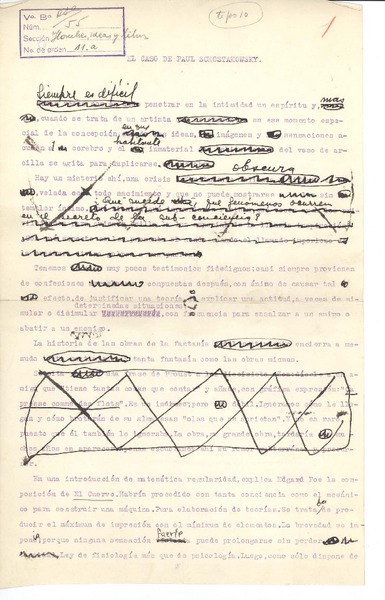 El caso de Paul Schostakowsky [manuscrito] Hernán Díaz Arrieta.