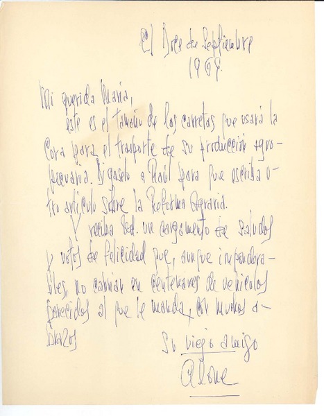 [Carta] 1969 nov. 12, Santiago, Chile [a] María Romero [manuscrito] Hernán Díaz Arrieta.