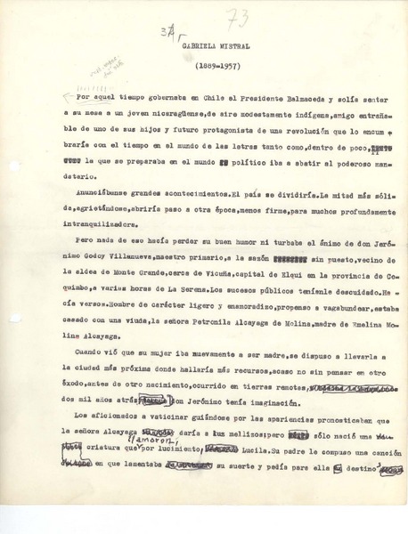 Neruda, Pablo - Ensayos chilenos - Mistral, Gabriela - Manuscritos chilenos