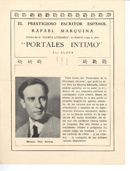 Portales íntimo por Alone [manuscrito] Rafael Marquina.