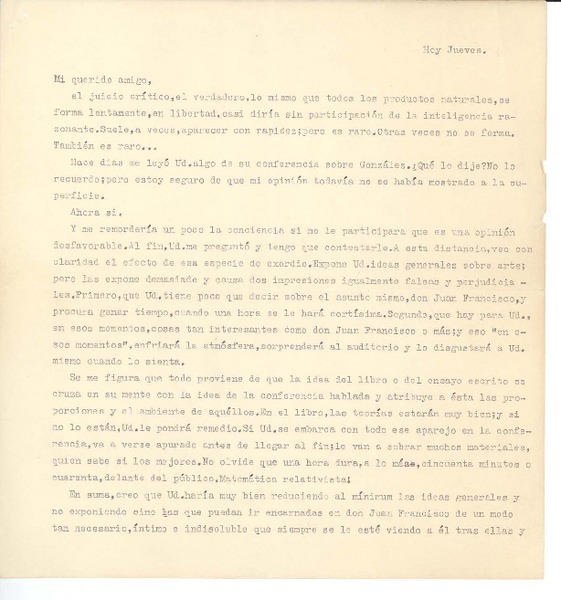 Santiago, Chile [a] mi querido amigo Carta, 1936 mayo 31, [manuscrito] Hernán Díaz Arrieta.