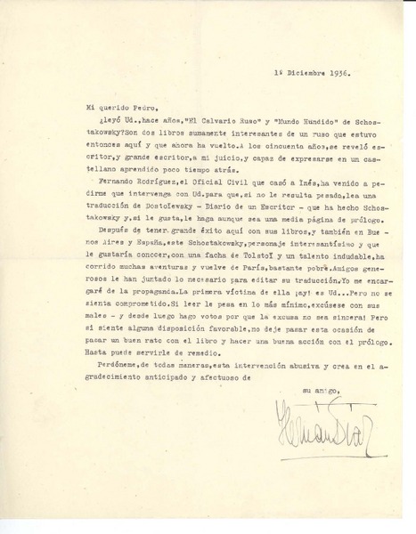 [Carta] 1936 dic. 1, Santiago, Chile [a] Pedro Prado [manuscrito] Hernán Díaz Arrieta.