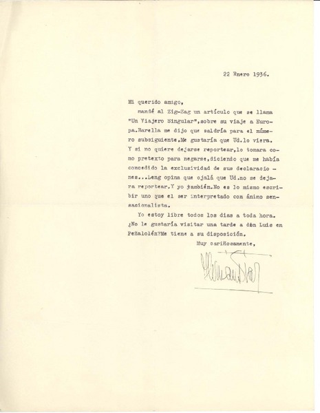 [Carta] 1936 ene. 22, Santiago, Chile [a] Pedro Prado [manuscrito] Hernán Díaz Arrieta.