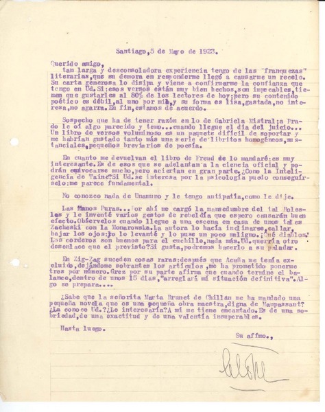 [Carta] 1923 may. 5, Santiago, Chile [a] Augusto Winter [manuscrito] Hernán Díaz Arrieta.