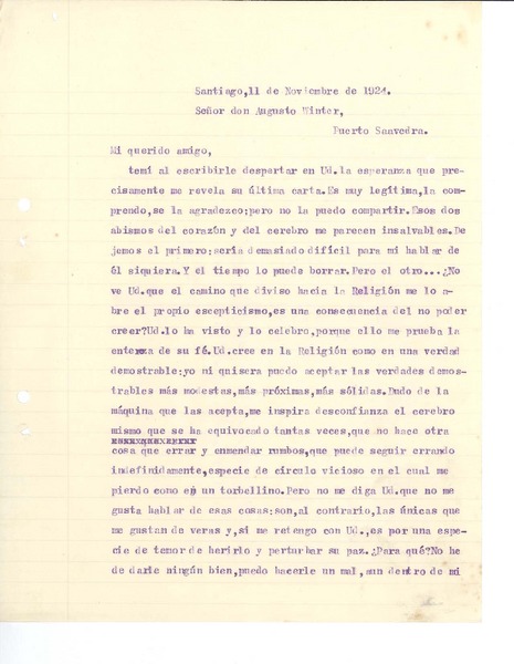 [Carta] 1924 nov. 11, Santiago, Chile [a] Augusto Winter [manuscrito] Hernán Díaz Arrieta.