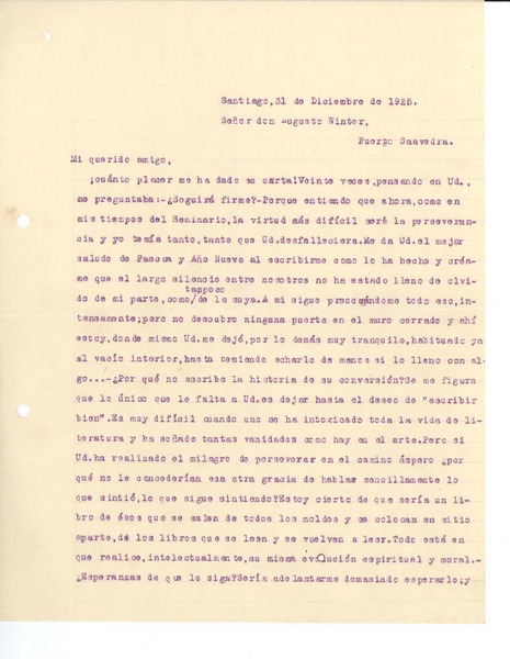 [Carta] 1925 dic. 31, Santiago, Chile [a] Augusto Winter [manuscrito] Hernán Díaz Arrieta.