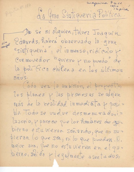 La gran siutiquería política [manuscrito] Hernán Díaz Arrieta.