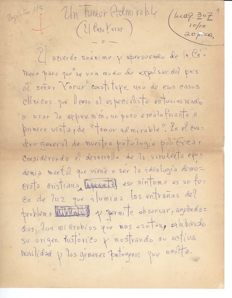 Warren, Earl - Artículos periodísticos - Manuscritos chilenos