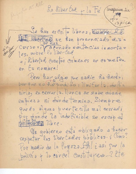 La libertad y la fe [manuscrito] Hernán Díaz Arrieta.