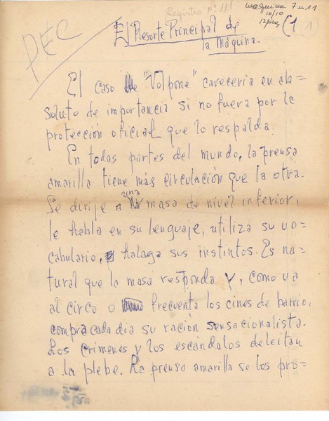 Artículos periodísticos - Volpone - Manuscritos chilenos