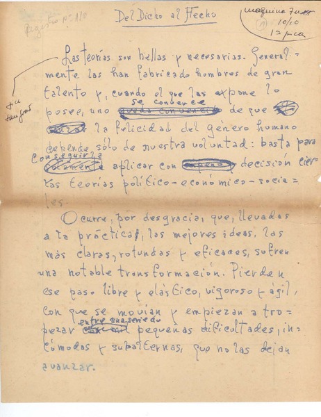 Del dicho al hecho [manuscrito] Hernán Díaz Arrieta.