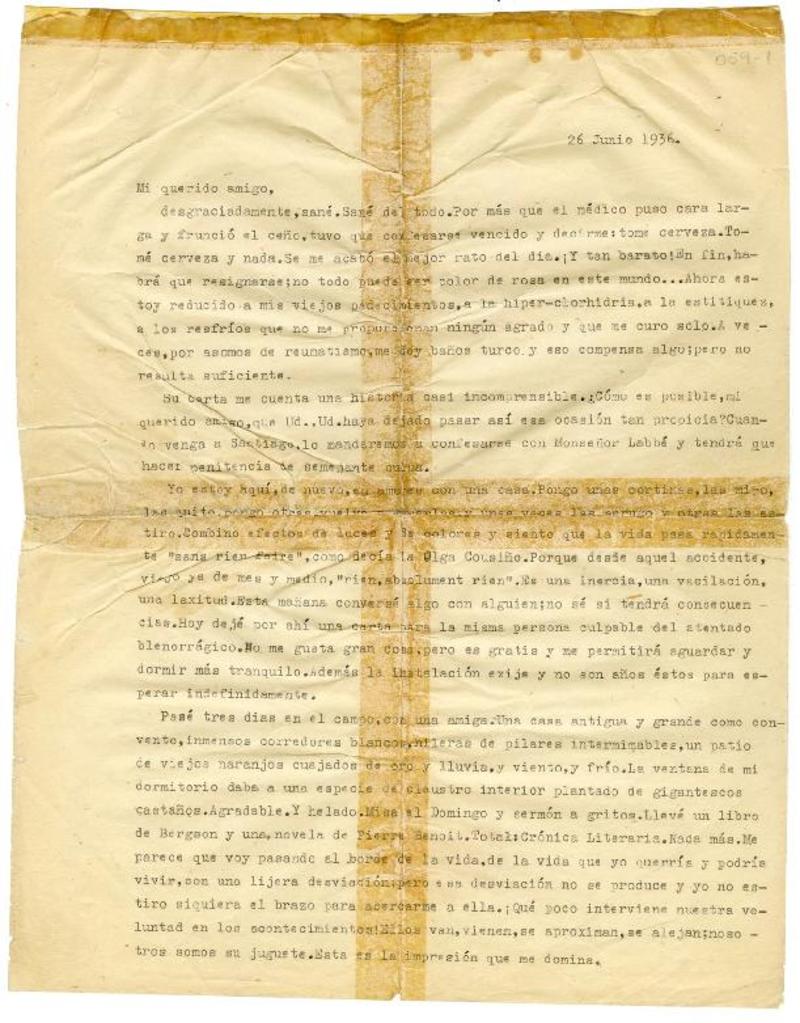 Santiago, Chile [a] mi querido amigo Carta, 1936 junio 26, [manuscrito] Hernán Díaz Arrieta.