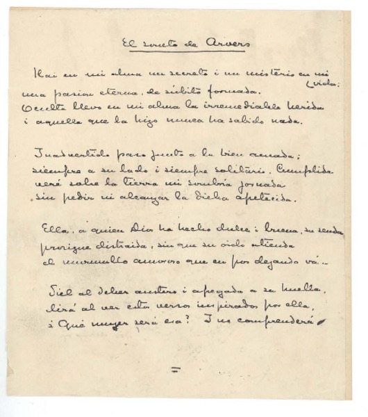 El soneto de Arvers [manuscrito] Manuel Magallanes Moure.