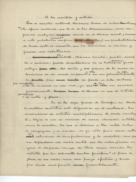 A los escritores y artistas [manuscrito] Manuel Magallanes Moure.