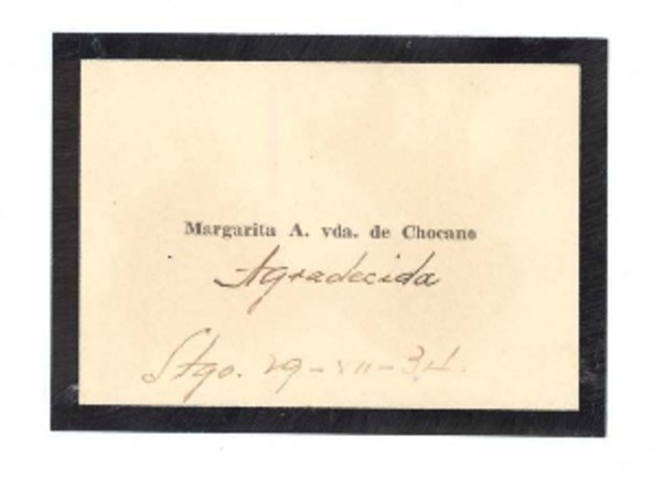 [Tarjeta] 1934 dic. 24, Santiago, Chile [a un amigo] [manuscrito] Margarita A. de Chocano.