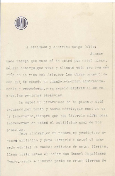 [Carta] 1921 nov. 27, Santiago, Chile [a Julio] [manuscrito] Juana Quindos de Montalva (Ginés de Alcántara).