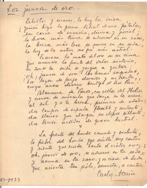 Los juncos de oro [manuscrito] Carlos Acuña.