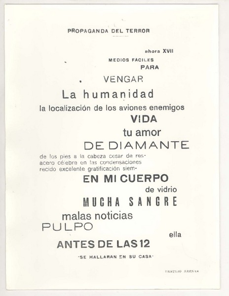 Propaganda del terror [manuscrito] Braulio Arenas.
