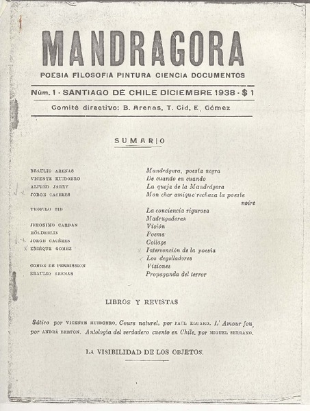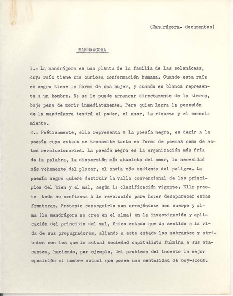 Mandragora [manuscrito] Braulio Arenas ; Teófilo Cid y Enrique Gómez-Correa.