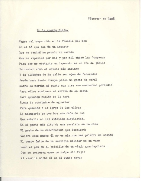 En la cuerda floja [manuscrito] Jorge Cáceres.