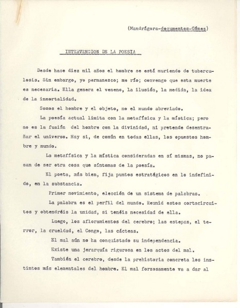 Intervención de la poesía [manuscrito] Enrique Gómez-Correa.
