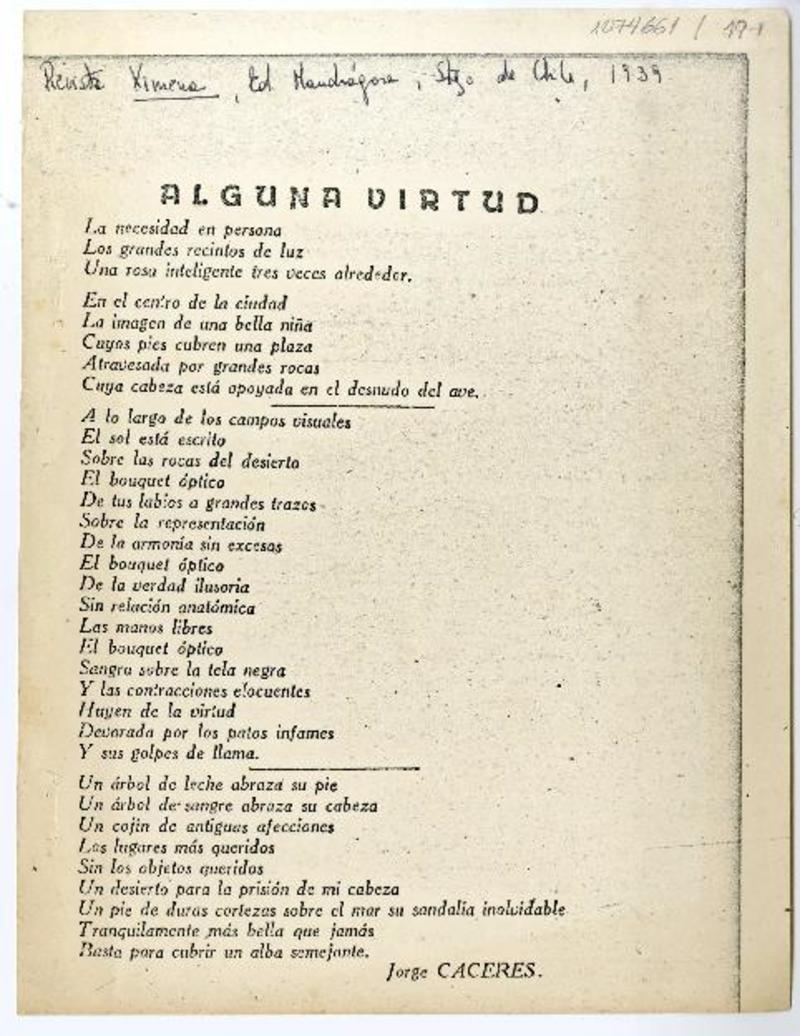 Alguna virtud [manuscrito] Jorge Cáceres.