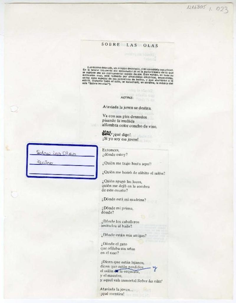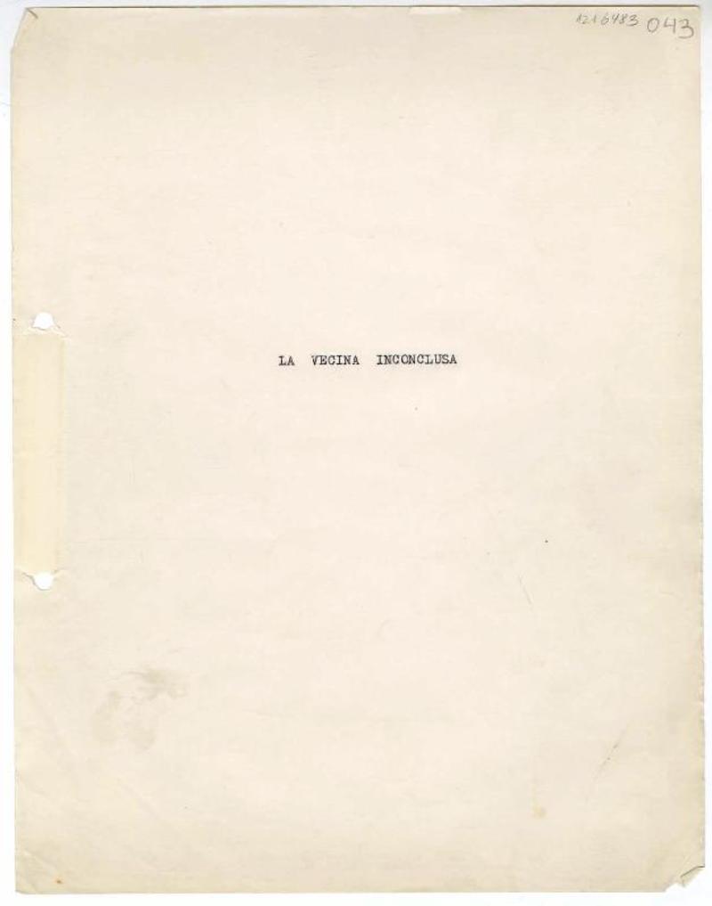 La vecina inconclusa [manuscrito] Braulio Arenas.