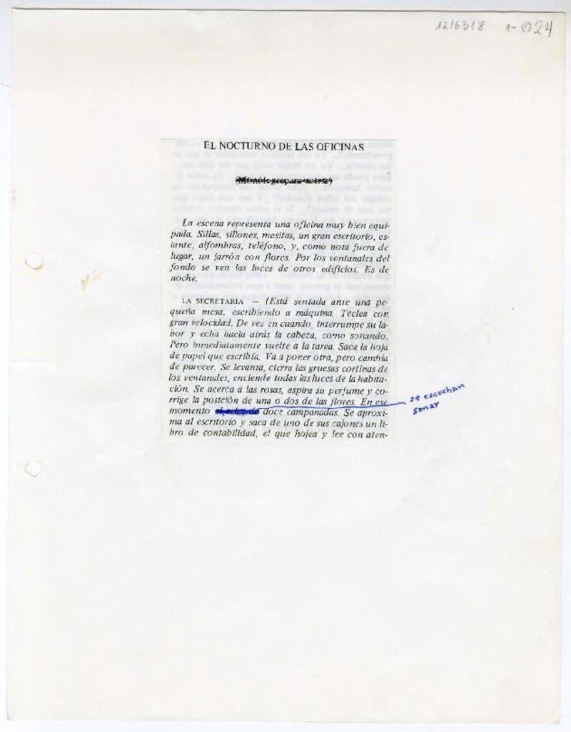 El nocturno de las oficinas [manuscrito] Braulio Arenas.