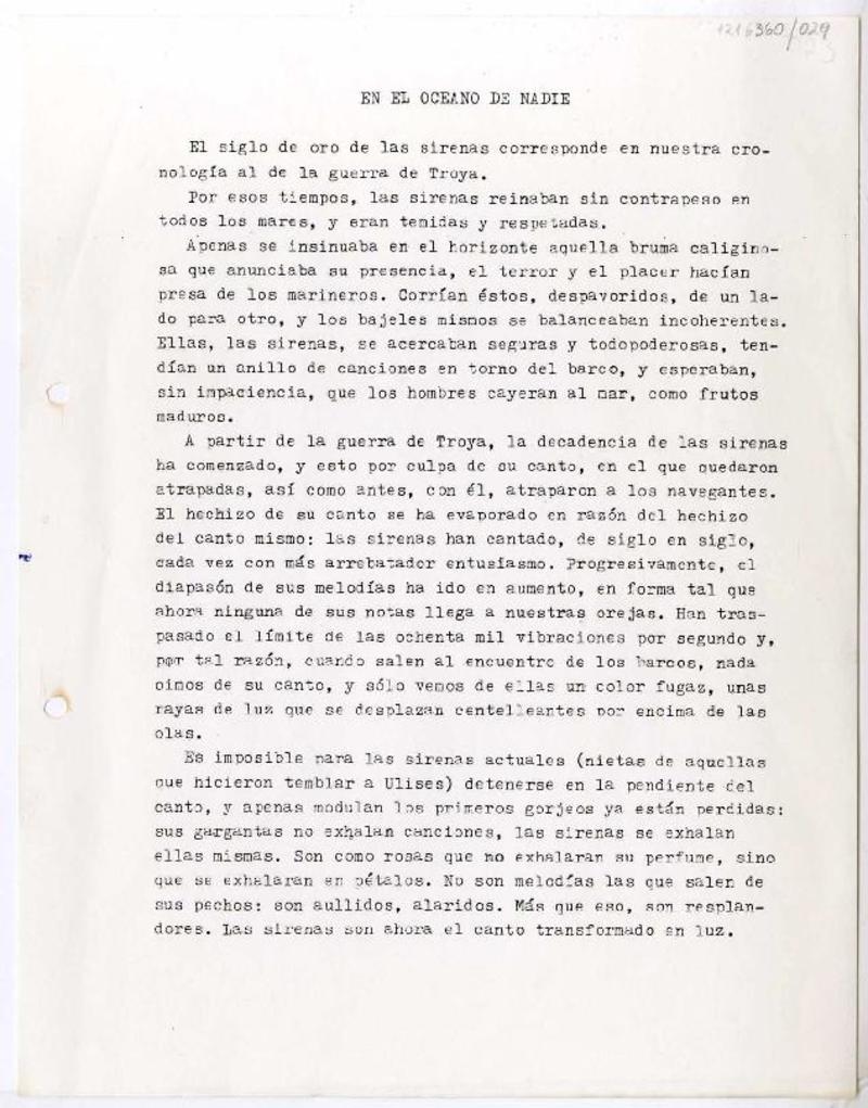 En el océano de nadie [manuscrito] Braulio Arenas.