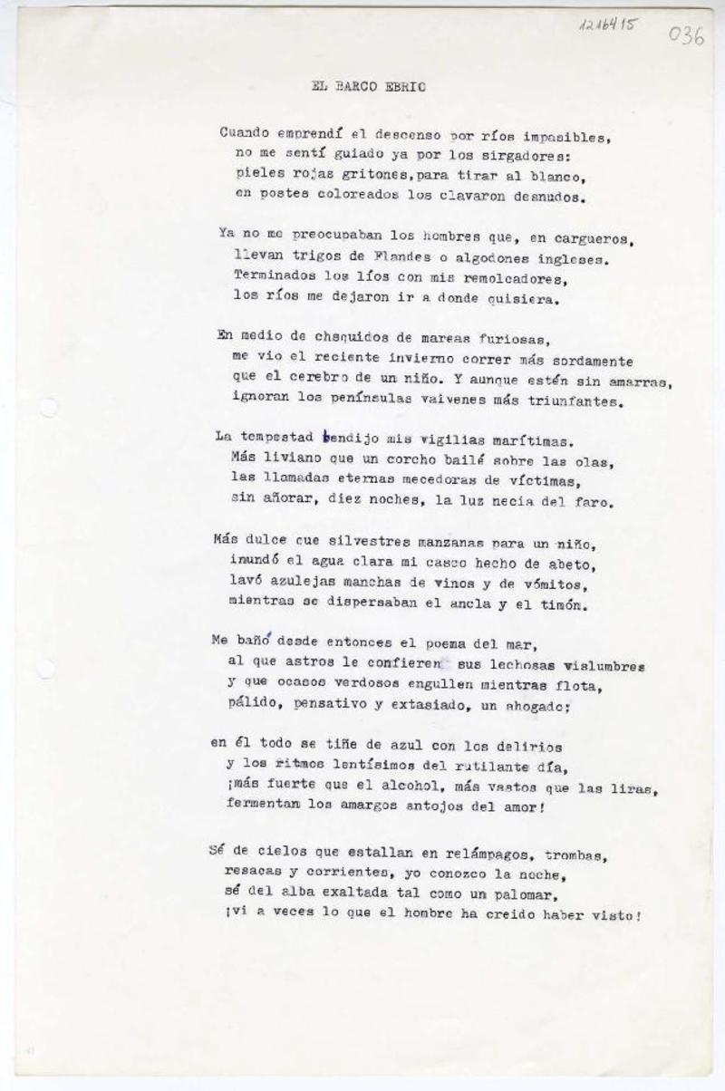 Dowson, Ernest - Manuscritos chilenos - Poesías francesas - Rimbaud, Jean Nicolas Arthur - Poesías inglesas - Barco ebrio