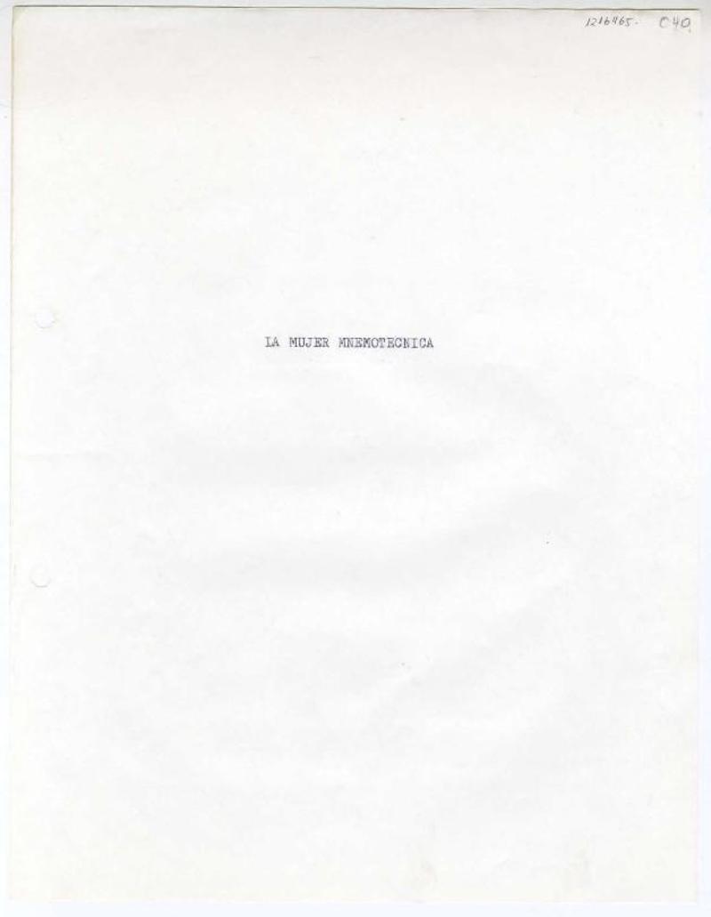La mujer mnemotécnica [manuscrito] Braulio Arenas.