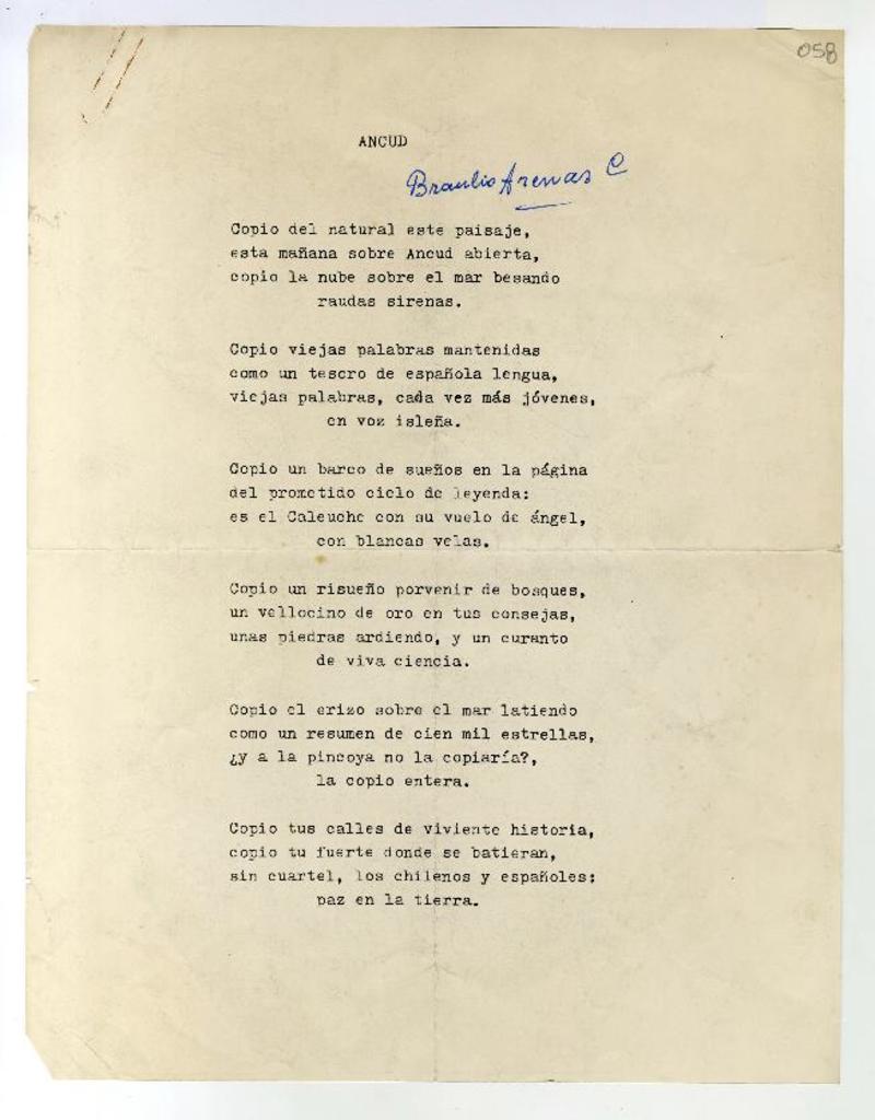 Ancud Castro y Achao [manuscrito] Braulio Arenas.